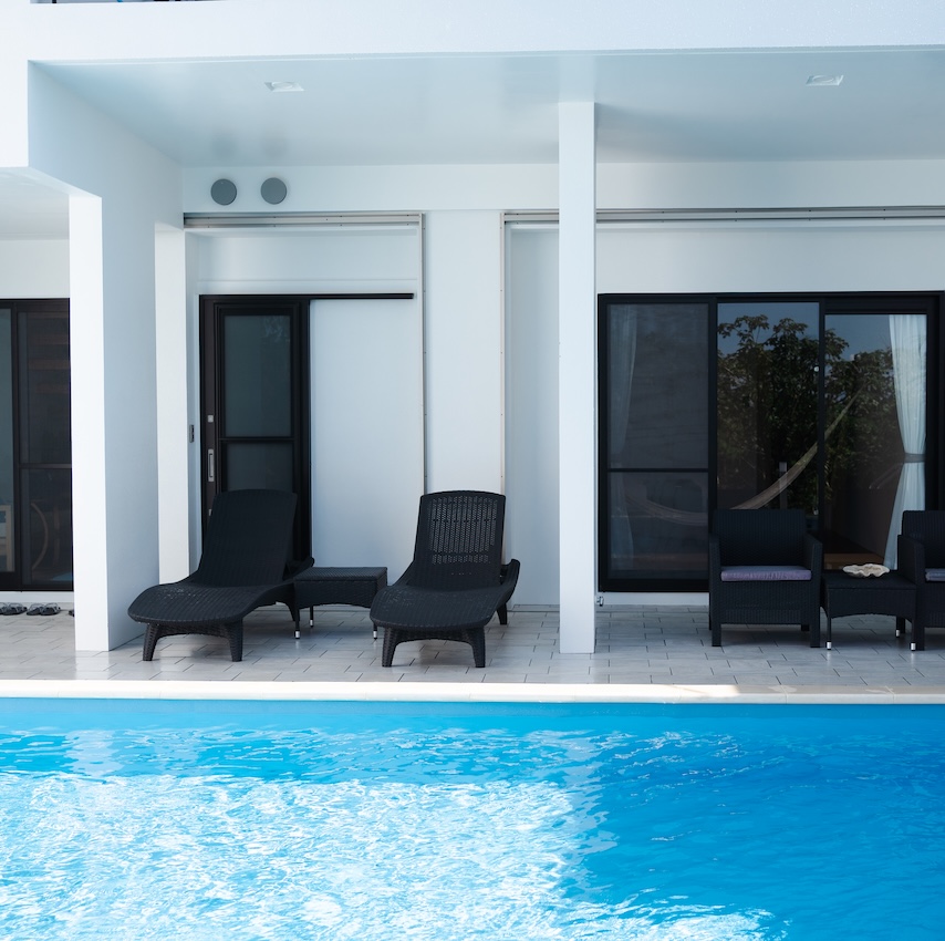 沖縄県石垣市にあるSiesta Simple is棟。一棟貸しのプールヴィラです。2018年7月にオープンしました。